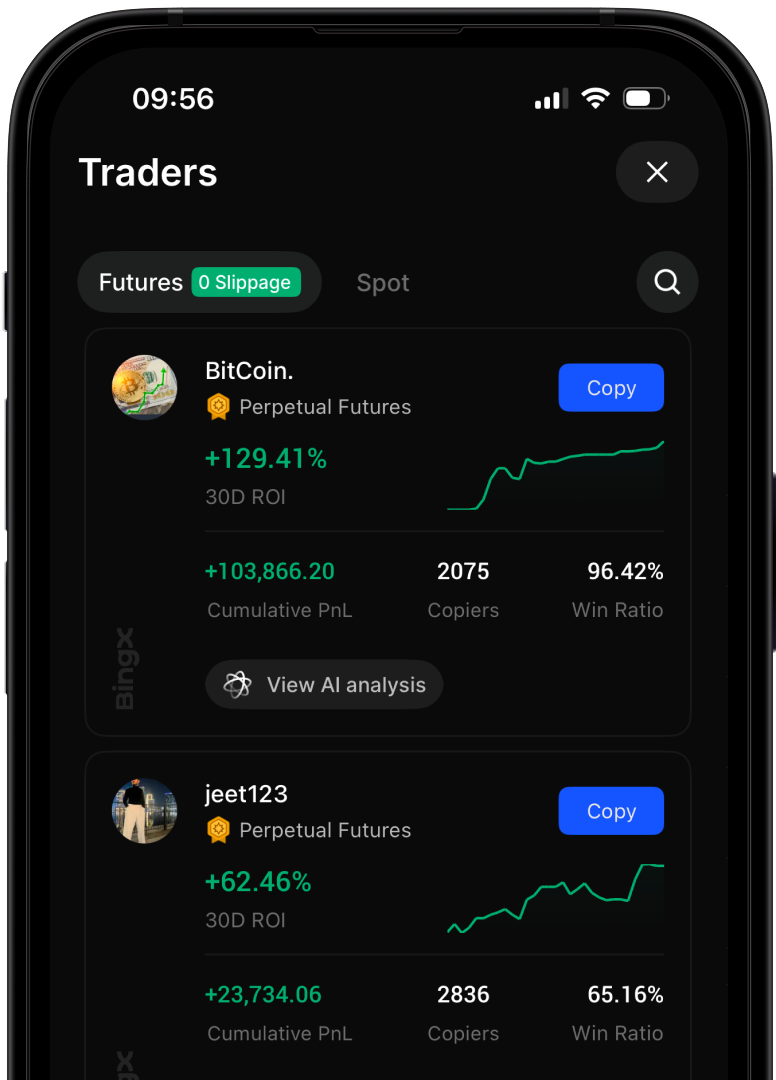Fundada en 2018, BingX es una empresa líder en el trading de criptomonedas y en inteligencia artificial Web3, que ofrece productos y servicios basados en inteligencia artificial, incluyendo derivados, spot trading y copy trading. Disfruta de una plataforma de trading fiable e inteligente que te ofrece herramientas innovadoras para mejorar tu rendimiento y confianza.